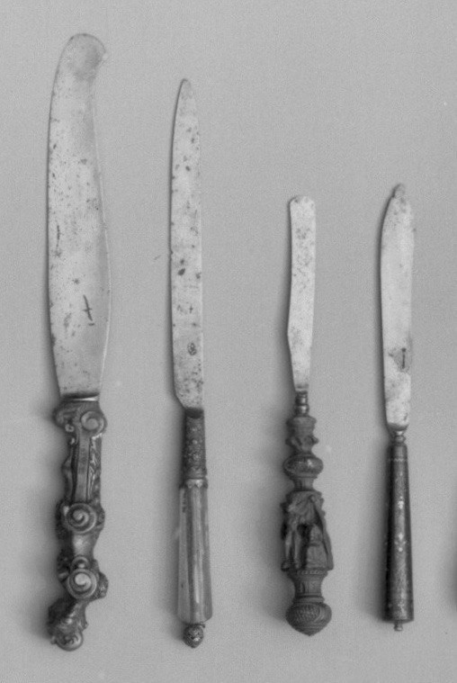 Считается, что привычные нам ножи закругленной формы ввел в моду французский король Людовик XIII, очень опасавшийся покушений. Точнее указ издал кардинал Ришелье. Закругленным ножом убить было практически невозможно. Из Франции мода быстро распространилась по всей Европе.