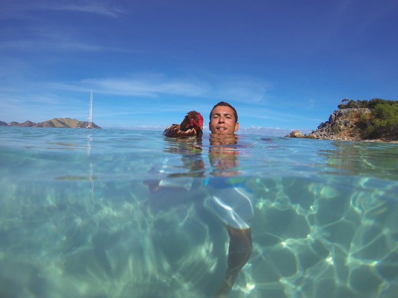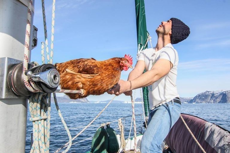Они вдвоем пересекли планету на яхте, побывали у берегов Гренландии, где их зажало во льдах, и посетили множество интересных мест. Рыжая курочка стала настоящим компаньоном француза: она не только исправно несет яйца и обеспечивает Гирека необходимым питанием во время дальних поездок, но и разделяет с ним все тяготы морской жизни.
