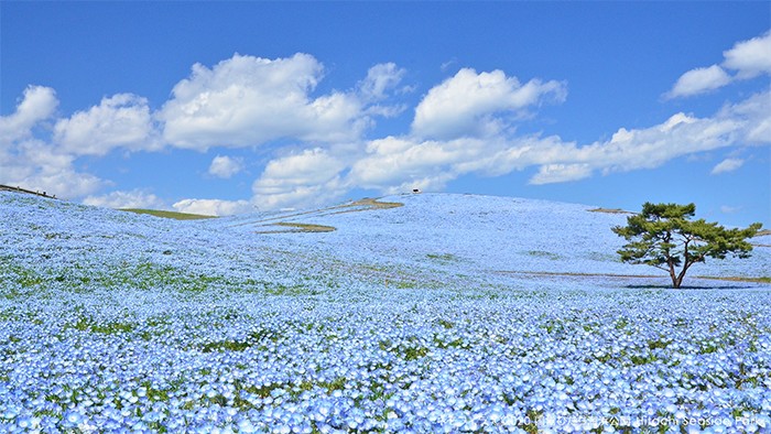 Несмотря на то, что большинство людей ассоциирует Японию с прекрасным цветением сакуры, всего в паре часов езды на север от Токио взгляду открывается сказочный пейзаж — океан нежных голубых цветов немофил.