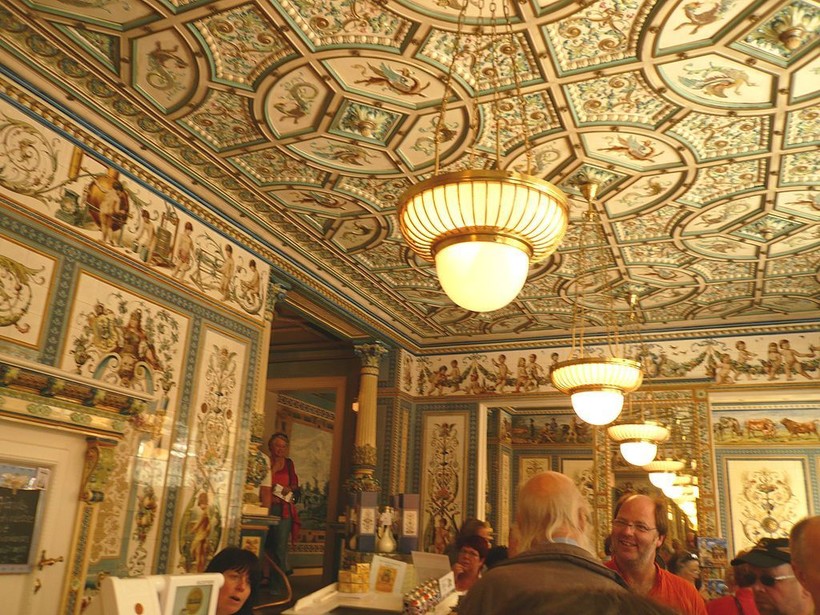 Стены от пола до потолка были покрыты танцующими ангелами, пухлыми младенцами, коровами и лесными фавнами. Позолота и люстра у первых посетителей вызывали впечатление, что они попали в ювелирный магазин. Это произведение искусства и архитектуры пережило все перипетии 20 века, особенно бомбардировку Дрездена во время Второй мировой войны.