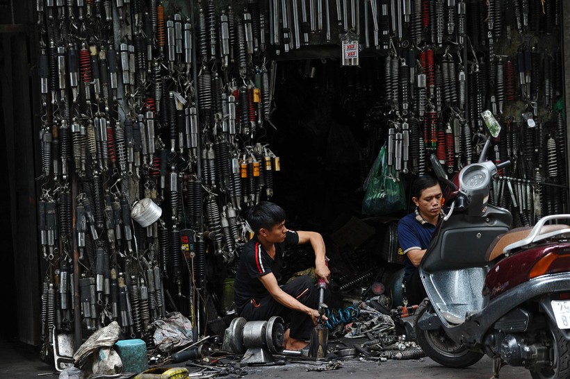 А кто-то открывает свой бизнес по ремонту мотоциклов ( Ханой, 17 сентября 2015 года).