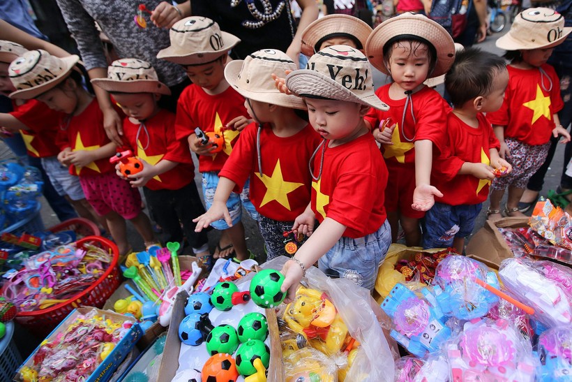 Однако вьетнамцы не все свое время проводят на полях. Вот, к примеру, дети в Ханое выбирают себе игрушки (23 сентября 2015 года).