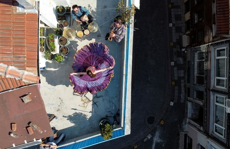 Выступление стамбульской танцовщицы, которая регулярно дает концерты для своих соседей на балконе.