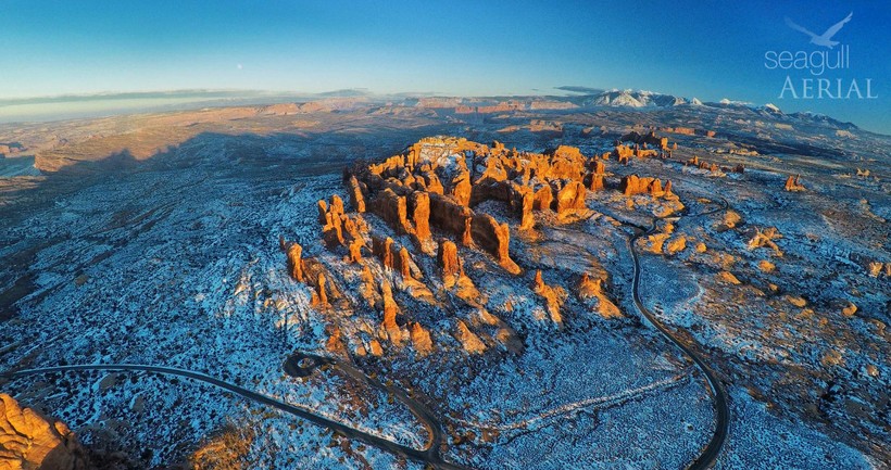 Попадающие в объектив летящего беспилотника солнечные лучи добавляют фото еще большей зрелищности.