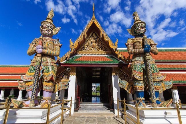 Этот храм, дом почитаемого Изумрудного Будды, известен своими павильонами, прангами и статуями мифологических существ, инкрустированных стеклянной и фарфоровой мозаикой.