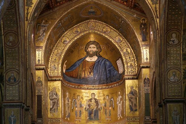Интерьер 800-летнего собора в Палермо содержит захватывающую мозаику из стеклянных плиток, большая часть которых позолоченная. В определенное время дня, когда свет проникает сквозь окна здания, помещение начинает буквально светиться и сиять благодаря этой невероятной мозаике.