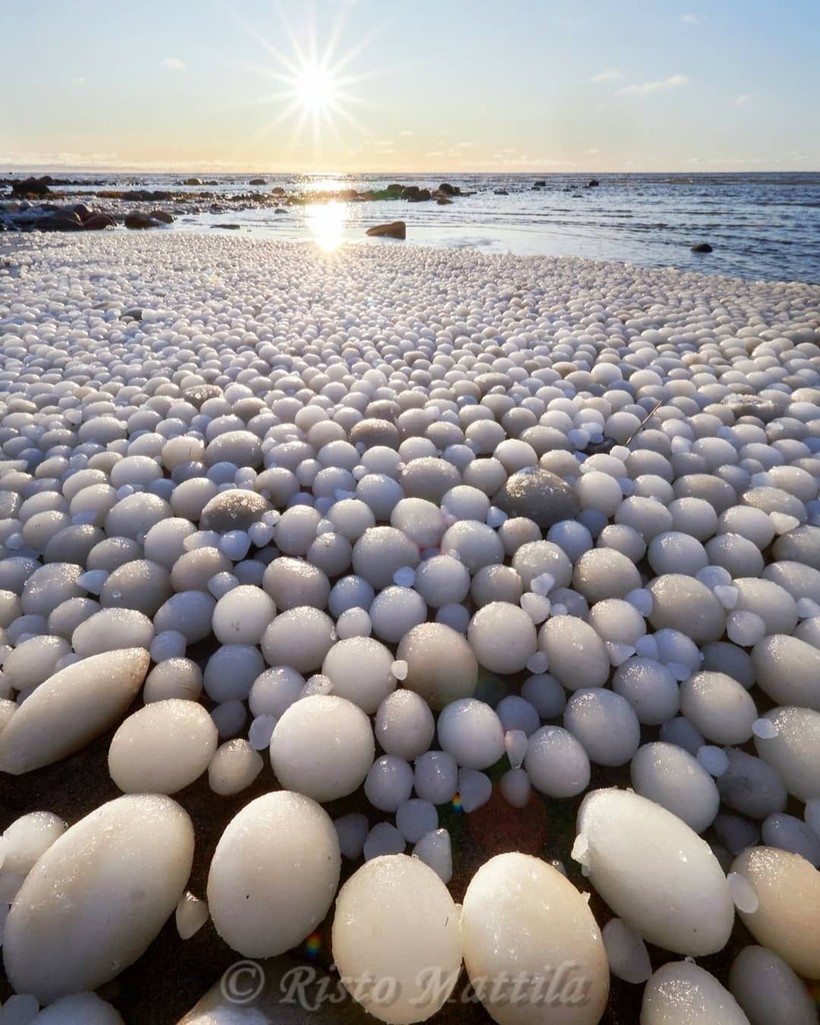 Странные ледяные яйца особенно часто попадаются людям на берегу Балтийского моря. Их образованию способствует определенная температура окружающей среды и воды, а также особенная скорость ветра.