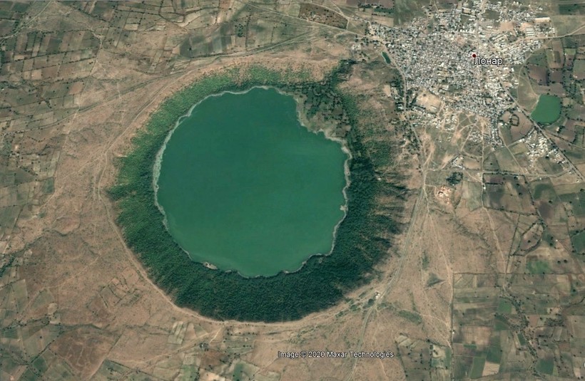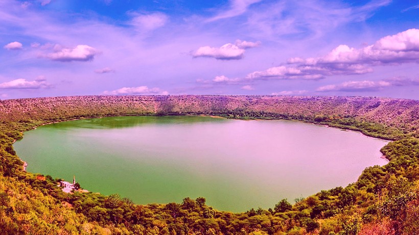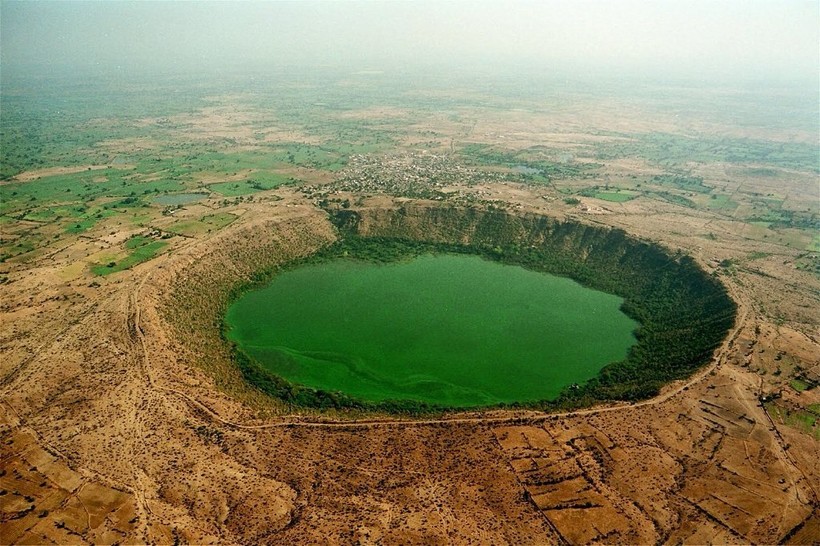 Озеро Лонар находится в Индии, на западе штата Махараштра. Этот водоем имеет необычное происхождение. Около 50 тысяч лет назад в этом месте упал метеорит. В результате встречи с небесным телом на земле осталась круглая впадина диаметром около 1,8 километра, которую со временем заполнила дождевая вода. Озеро имеет значительную глубину — более 130 метров. Но вода в нем совершенно непригодна для питья, так как она соленая: замкнутый бессточный водоем не имеет пресных притоков и пополняется в основном за счет дождевых вод. В засушливый сезон уровень озера падает и минерализации повышается, но в среднем держится на отметке 10 ‰, то есть 10 грамм/литр. Это примерно в 3 раза меньше, чем в Мировом океане, но для питья она все равное непригодна.
