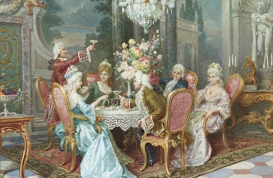 Танцы — это одно, но хорошо поужинать тоже неплохо. Газета «Московский телеграф» за 1828 год среди новостей светской хроники описывала, что во Франции на балах, помимо пунша, в том году подавали сваренные в сахаре персики с предварительно снятой кожицей.