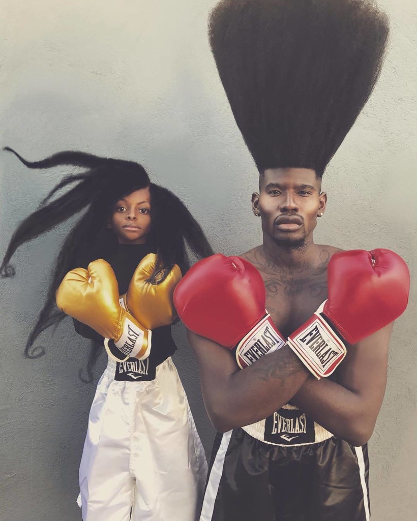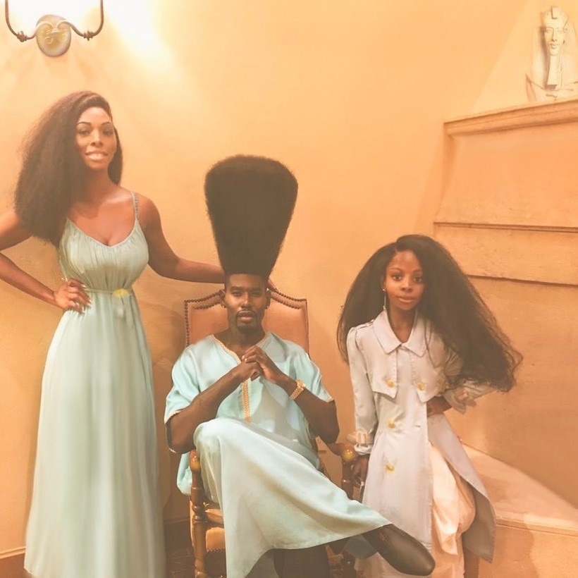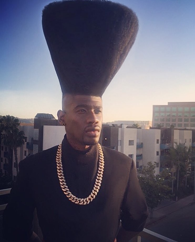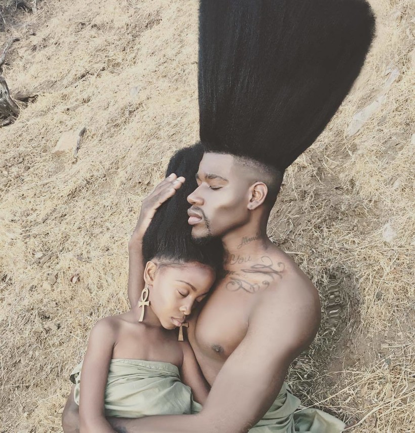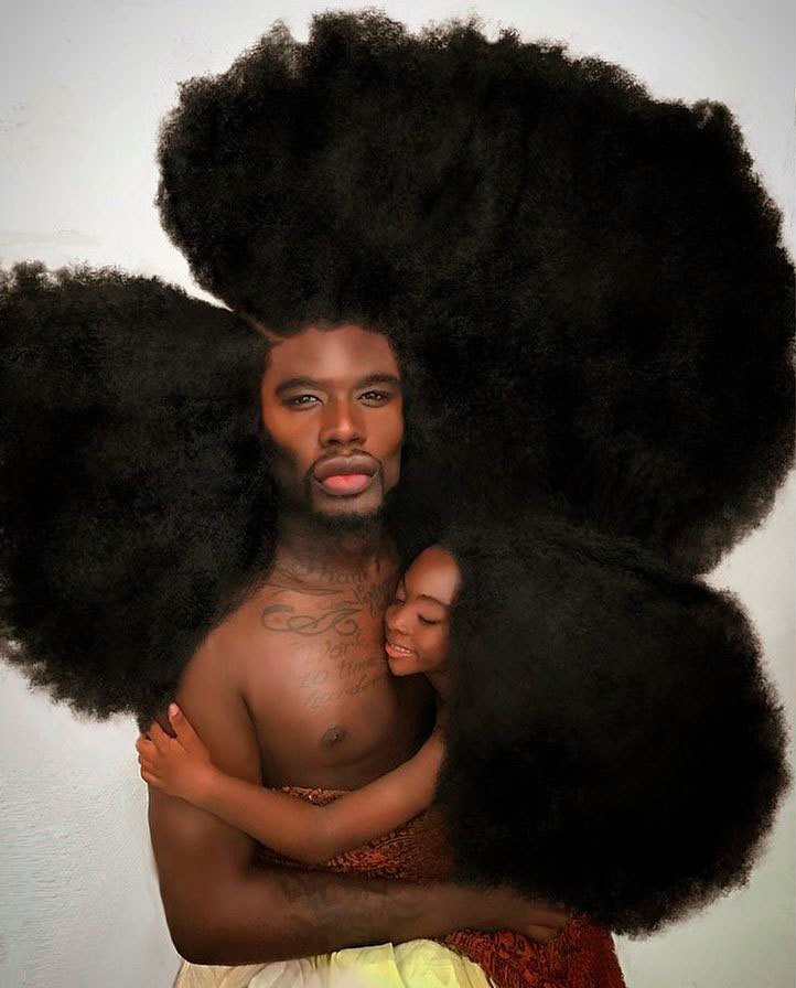 Модель и художник, проживающий в Калифорнии, стал истинной звездой четыре года назад, когда фотографии его поразительной афропрически облетели весь интернет и стали вирусными. Его дочка Джексин, получившая свои не менее удивительные локоны, по всей видимости, в наследство от папы, также фигурировала в большинстве кадров. Это лишь сделало изображения еще более популярными.