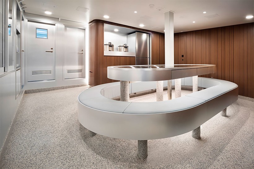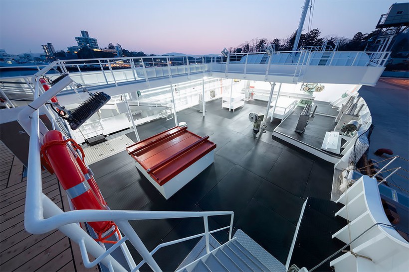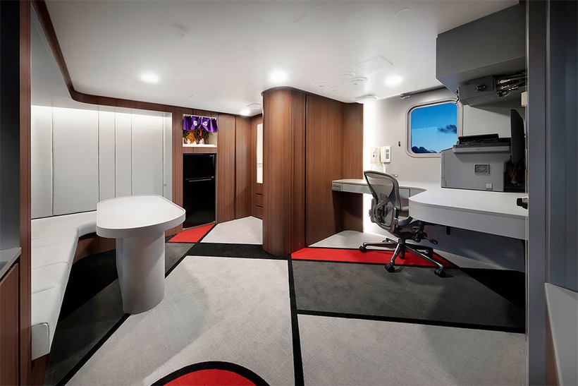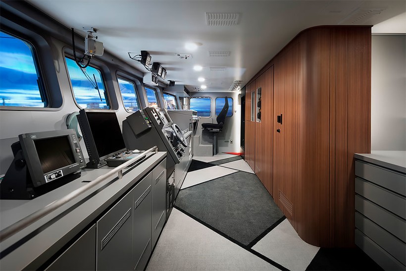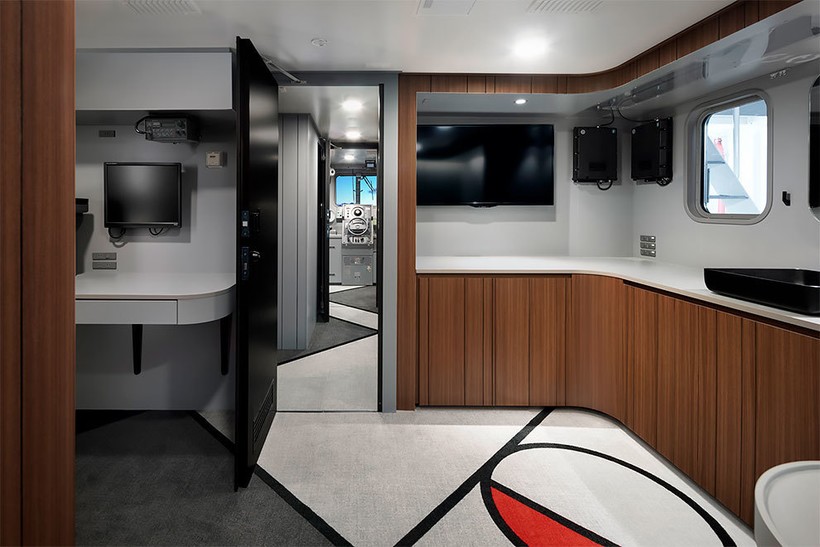 Лодка была покрыта линейным рисунком, подчеркивающим изгибы корпуса. Остальную часть судна декорировали японскими узорами. В дизайне много прямых линий, которые должны напоминать о жизни на суше — прямые линии зданий, окон, экранов — и умиротворяюще действовать на нервную систему моряков.