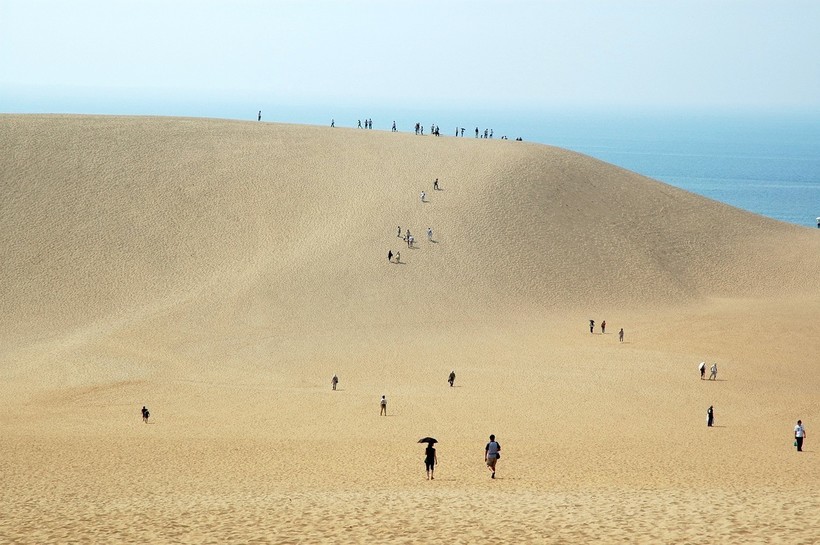 Это место чрезвычайно популярно у японцев. Дюны Тоттори — это уникальная возможность увидеть настоящую пустыню, не покидая пределов страны, ведь в Японии таких мест больше нет. Летом, когда солнце светит целый день, температура песков на этом огромном пляже достигает 50ºС. Здесь можно сполна ощутить себя путником, бредущим посреди раскаленной пустыне, ведь в Тоттори есть где разгуляться. Ежегодно территорию национального парка, где находятся дюны, посещают около 2 миллионов человек, подавляющее большинство которых — это сами японцы. Здесь можно прокатиться на верблюде, полетать на парапланах или заняться сэндбордингом. Самые красивые и необычные дюны даже имеют свои названия.