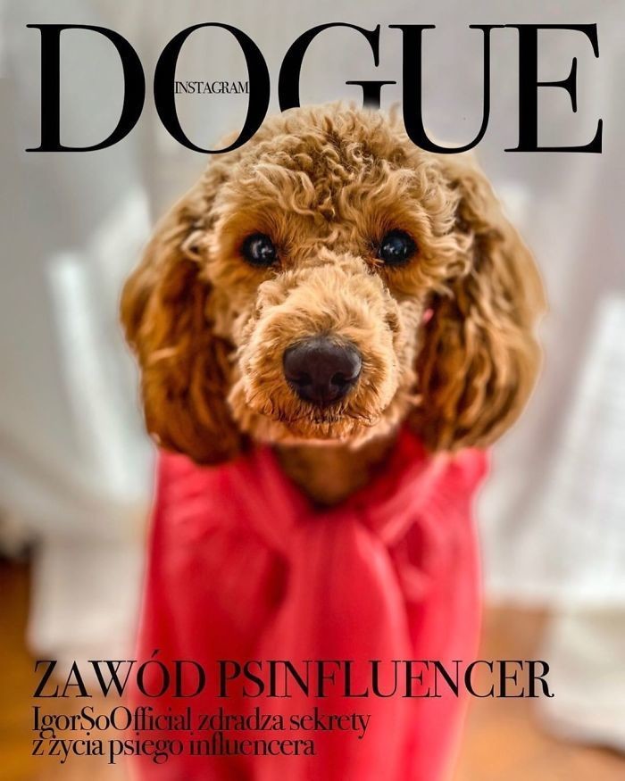 Идея принадлежит двум полякам, большим фанатам собак. Еще раньше в сети был популярен флешмоб #VogueChallenge: его участники фотографировались в стиле обложек журналов. Но кому-то показалось недостаточно этих снимков, так на обложках появились собаки.