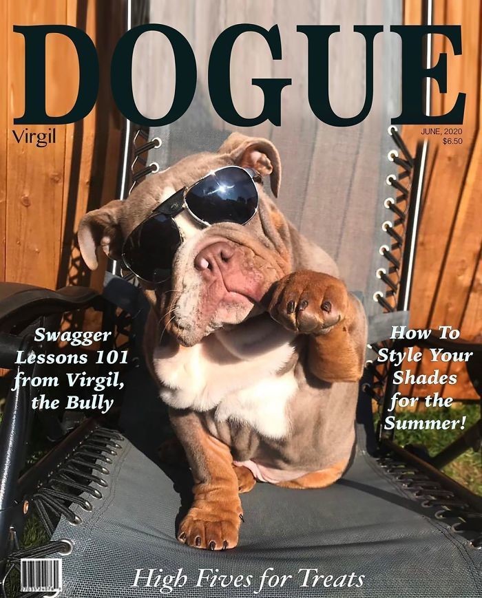 2020 год выдался сложным, однако невозможно отрицать, что он породил множество классных флешмобов в сети. И вот один из новых ― Dogue Challenge. Владельцы собак превращают снимки своих питомцев в обложку журнала. И знаете, собаки на обложке выглядят не хуже настоящих моделей, над которыми профессионально поработала целая команда визажистов, стилистов, парикмахеров и фотографов.