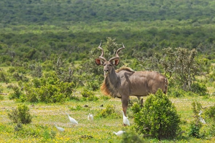 Благодаря своему внушительному росту и симметричным спиральным рогам куду обладают поистине величественной фигурой. Обитая в восточной и южной частях Африки, эти лесные антилопы являются травоядными и проводят большую часть своего времени в поисках побегов и листьев. Прекрасное животное можно чаще встретить на юге материка, поскольку здесь оно охраняется законом и обитает во многих национальных заповедниках. Знаменитый национальный парк Крюгера, конечно же, входит в их число.