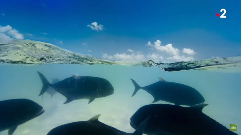 «Крачки при виде этих рыб быстро понимают, что нужно избегать посадки на воду. Они даже пьют в полете. Для того, чтобы поймать их, рыбы должны достигать предельной скорости. Каранксы обладают выдающимися мыслительными способностями. Они могут рассчитать скорость, высоту и траекторию птицы. Пришло время для каждой молодой крачки научиться летать и самостоятельно питаться. Родители ведут их в лагуну», — рассказывает автор.