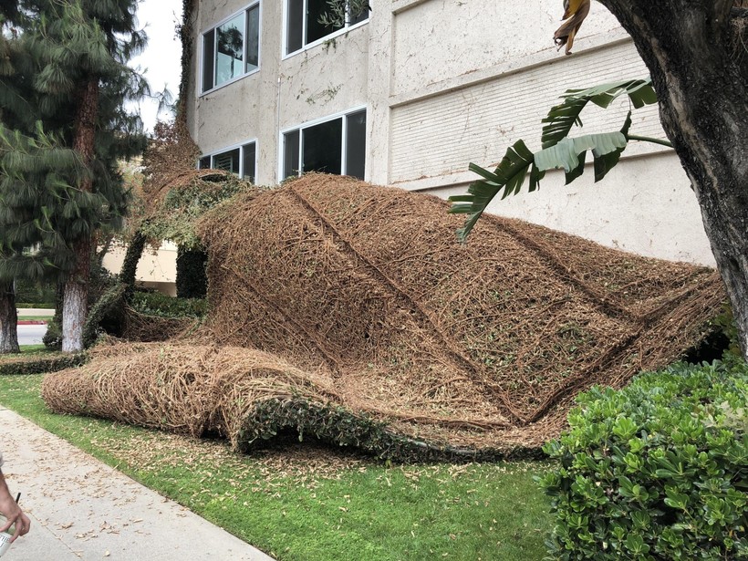 Плющ, длительное время растущий на стене дома, неожиданно рухнул и привлек к себе особое внимание.
