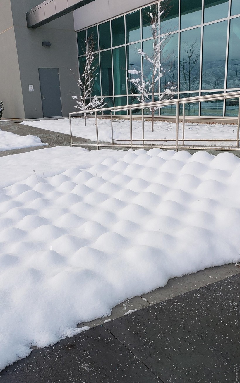 Это пушистое одеяло было создано неожиданным снегопадом. Весь секрет в том, что слой снежинок покрыл кусты.