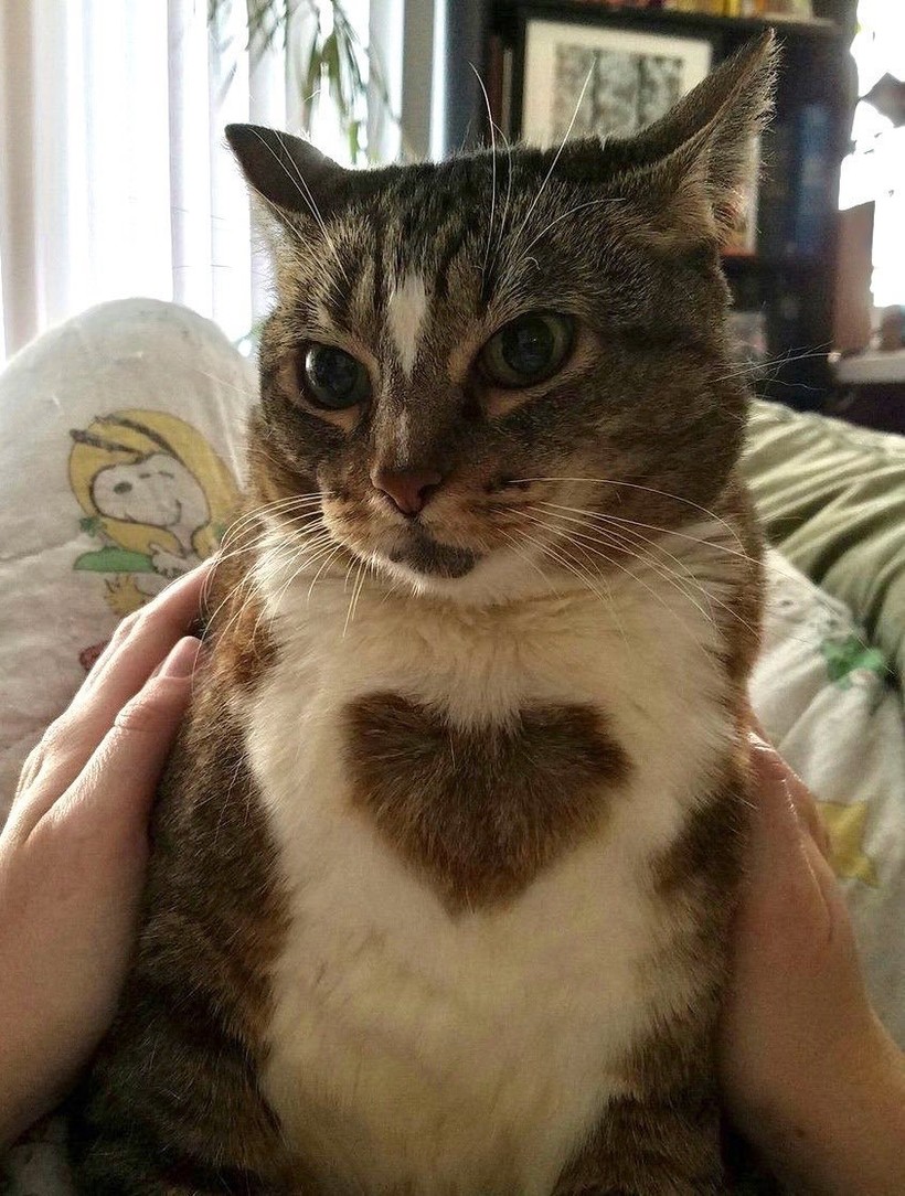 Окружающие нас братья наши меньшие нуждаются в любви и заботе. Именно такое послание несет этот котик, на котором сама природа нарисовала сердечко.
