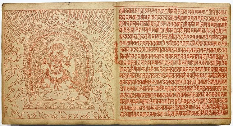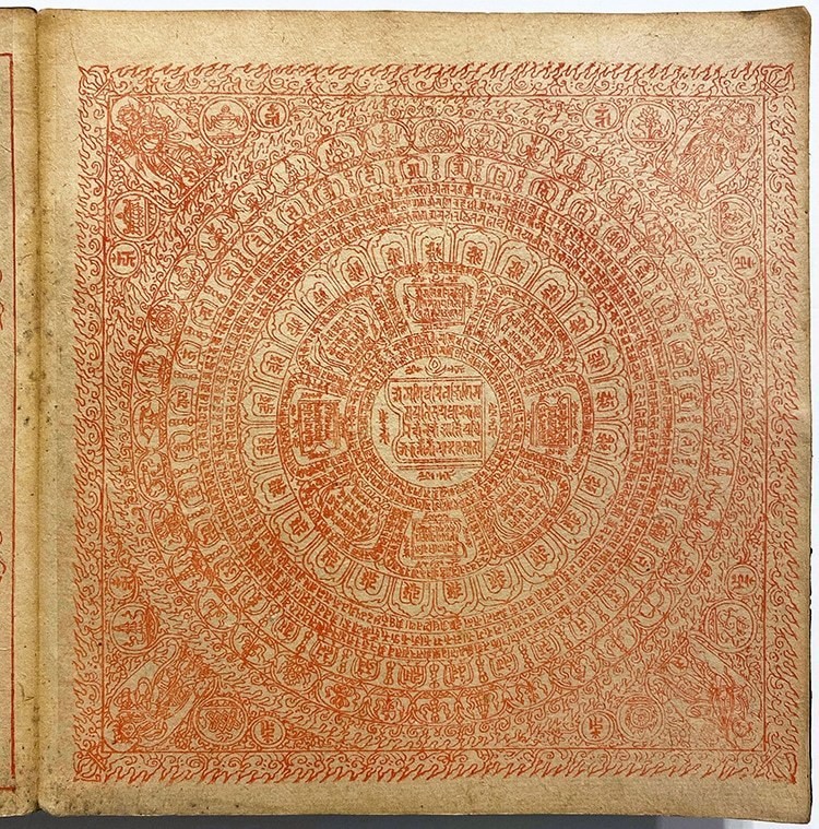 Пользователь под ником Incunabula рассказал, что книга содержит санскритские дхарани, а также иллюстрации защитных мантра-диаграмм и божеств. А ее внутренние страницы, напечатанные ярко-красными чернилами, защищены внешним покрытием черного цвета, на котором изображено двадцать золотых икон Татхагаты (имя Будды на санскрите). Текст был разработан как для европейских, так и для азиатских читателей. Его можно читать в индо-тибетском стиле, перелистывая страницы справа налево, или в китайском стиле, листая наоборот.