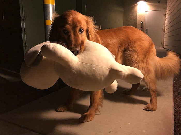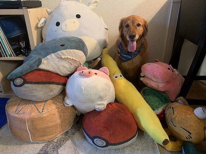 Все собаки такие же разные, как и люди. Как и у людей, у каждой из них есть свои маленькие (а может, и не очень) причуды и странности. Например, наша сегодняшняя героиня — очаровательный золотистый ретривер по имени Пои (сокращенно от Посейдон) — никогда не выходит из дому, не прихватив одного из своих плюшевых «спутников». Несколько дней назад хозяин выложил несколько фотографий своей питомицы в сети, чтобы показать, какие игрушки она постоянно берет с собой. И это просто восхитительно!
