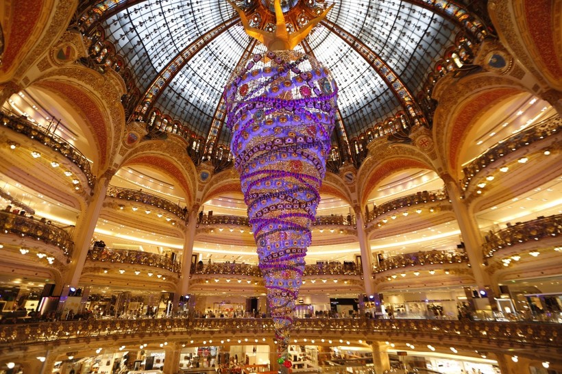 Елка длиной 25 метров украшает французский универмаг Galeries Lafayette.