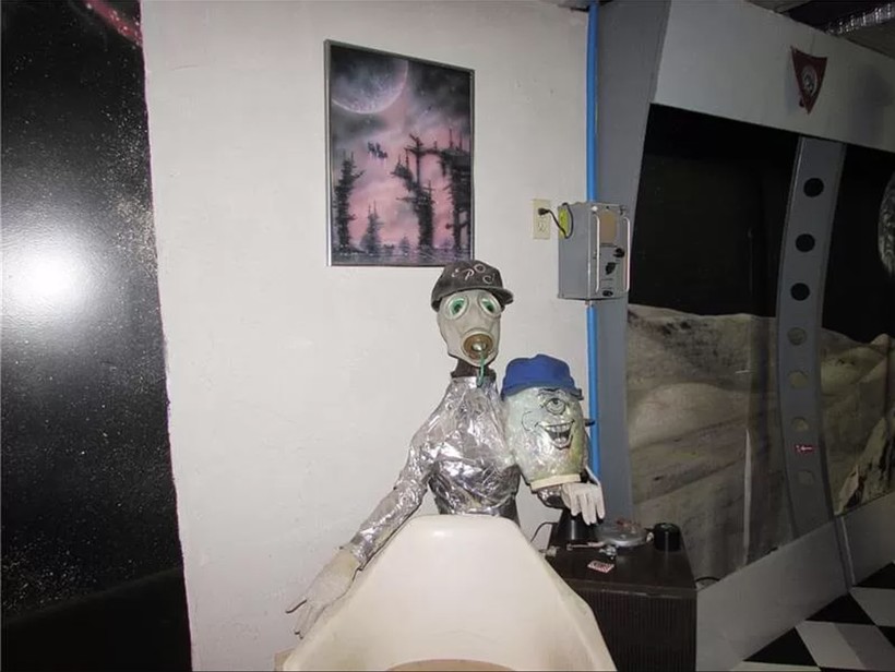Жилье украшают непонятные самодельные фигурки, отдалено напоминающие героев фантастических фильмов.