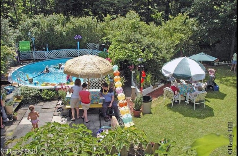 Снаружи это было ничем не примечательное жилище, похожее на самые обыкновенные частные постройки. Во дворе есть просторная лужайка и бассейн.