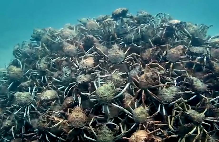 Крабы Leptomithrax gaimardi. Они обитают в Австралии и каждый год в заливе Порт-Филлип собираются в огромные горы. В таком виде они напоминают инопланетных существ с шипами. Они сплачиваются для одновременной миграции. Причина такого поведения не установлена точно. Но ученые предполагают, что все дело в защите — в это время крабы сбрасывают старый хитиновый панцирь, и, пока не затвердеет новый, они становятся уязвимыми для врагов. Чтобы повысить выживаемость своего вида, они строят крепости из самих себя — забираются друг на друга, прикрываясь от хищников.