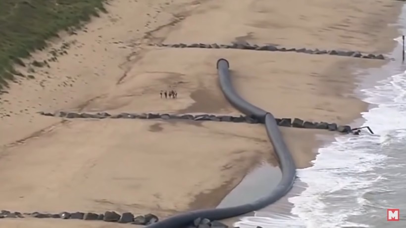 Гигантская труба. Некоторые вещи на пляже можно не заметить, но на пляже в графстве Норфолк, Англия, были обнаружены огромные трубы диаметром 2 метра. Всего было выброшено на берег 4 трубы, а еще 8 осталось плавать в воде неподалеку. Но поражает длина труб — самая большая достигала 480 метров. Как выяснилось позже, трубы были произведены в Норвегии и буксировались в Алжир. Но вмешался человеческий фактор: часть груза попала в море, а затем волнами его прибило к берегам Англии.