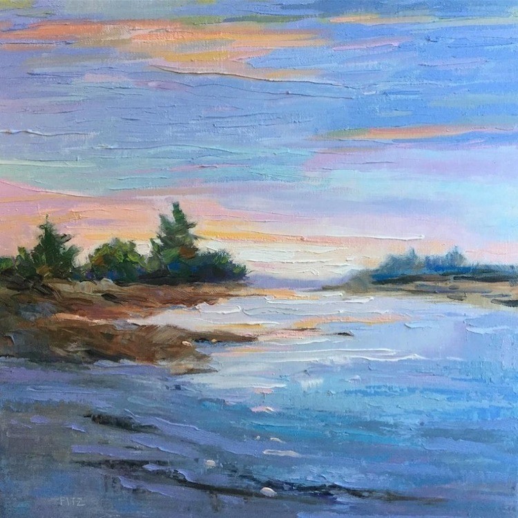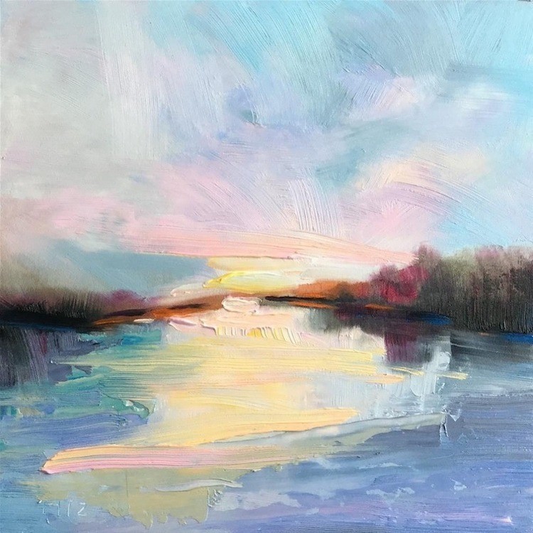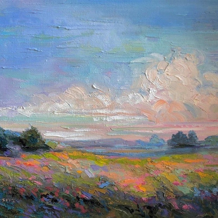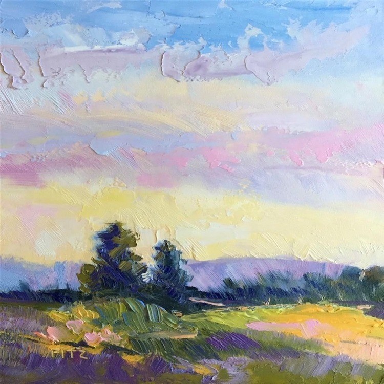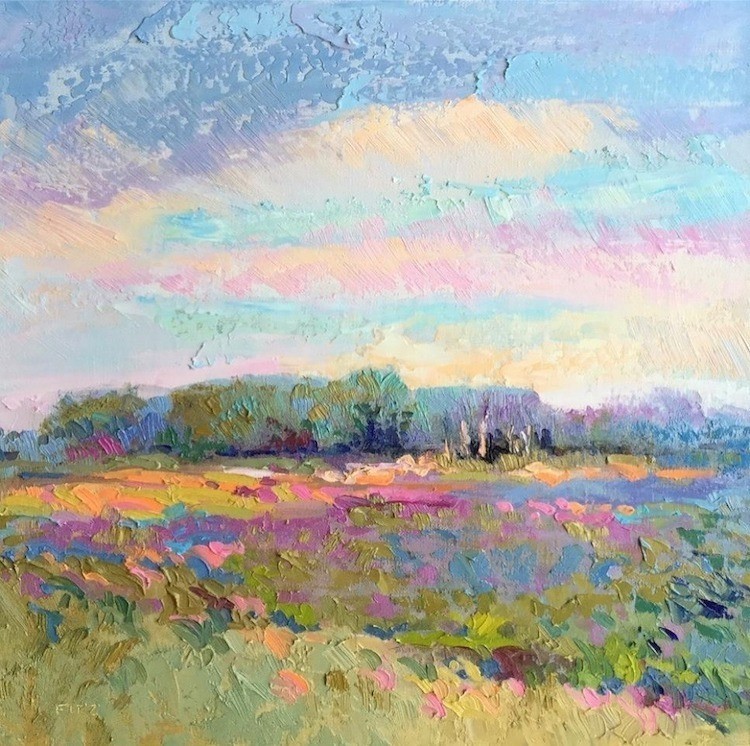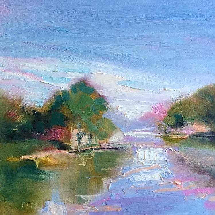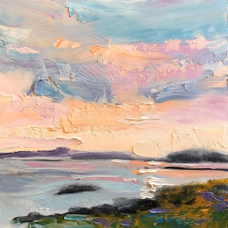 Пастельные картины Шарлотты Фицджеральд, украшенные густыми мазками масляной краски в нежных оттенках, прекрасно передают безмятежную красоту природных сцен. Для нанесения пигмента на холст художница часто использует шпатель, что позволяет ей создавать картины, наполненные богатой текстурой и бесчисленным количеством невероятных тонов.