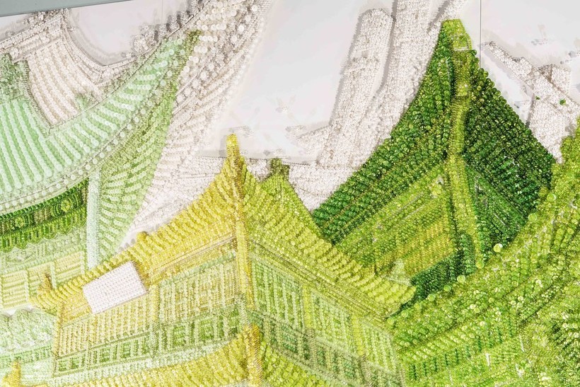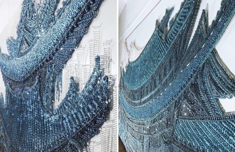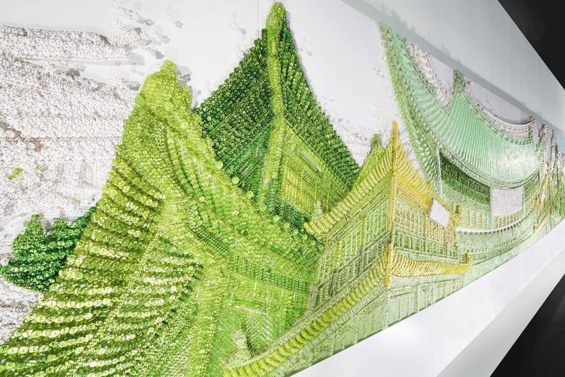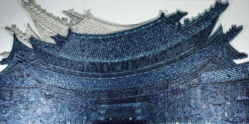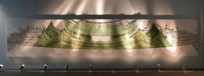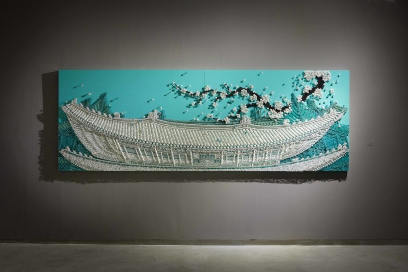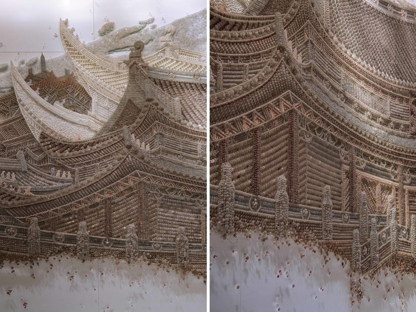 Художница корейского происхождения Ран Хван известна своим изобретательным использованием материалов для создания современных инсталляций. Используя бусины, пуговицы и булавки, она старательно работает над созданием текстурных произведений искусства, которые потрясают как издалека, так и вблизи. В своем проекте Palace Series она применяет эту технику к традиционной корейской архитектуре, и результаты поражают.