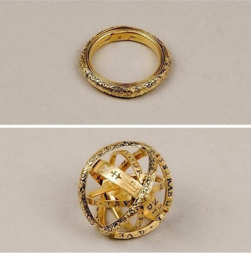 Сопоставимые с более крупными навигационными инструментами кольца армиллярной сферы, которые носили исследователи XVI и XVII веков, были необычными предметами, символизирующими знание. Они имели от двух до восьми пластинок и украшались астрологическими знаками и камнями. Это кольцо родом из Германии, часто его изготовление связывают с еврейским врачом 15-го века Боне из Латтеса.