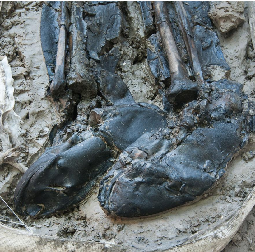 Кожаные сапоги, принадлежащие 500-летнему средневековому скелету, найденному в Лондоне