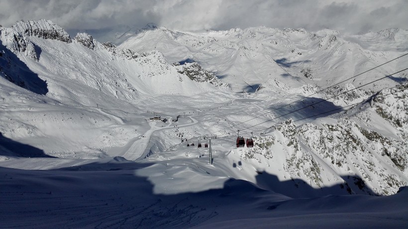 Ледник Презена — популярный горнолыжный курорт в Ломбардии, на севере Италии. На его склонах обустроено несколько трасс для катания, есть подъемники, пункты проката и сопутствующая инфраструктура. Как и большинство ледников Европы, Презена постепенно отступает выше, пытаясь убежать от глобального потепления. Розовый цвет ледника — одно из проявлений тех перемен, которые наблюдаются на нашей планете.