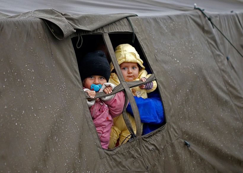 Маленькие беженцы в палаточном лагере в Хорватии.