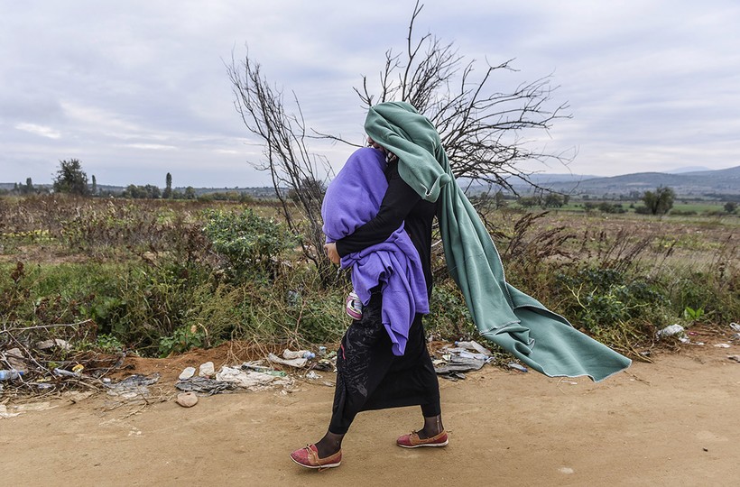 Эта женщина с ребенком пришла из Македонии, а теперь направляется дальше.