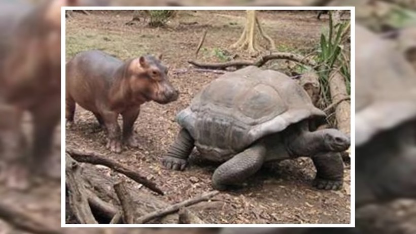 Черепаха и бегемот. В 2004 году огромное цунами обрушилось на ряд африканских стран, включая Кению. При этом пострадало немало людей, были смыты города и села, лежащие на побережье. Но не только люди были в беде: животным тоже досталось от большой волны. К примеру, маленького бегемота по имени Оуэн смыло в океан, где он застрял на коралловом рифе. Но сердобольные жители местной деревни спасли его и отправили в реабилитационный центр, потому что вряд ли бегемот смог бы выжить в дикой природе ввиду молодого возраста. В центре Оуэн подружился с гигантской черепахой. Вероятно, он нашел в ней внешнее сходство с бегемотом.