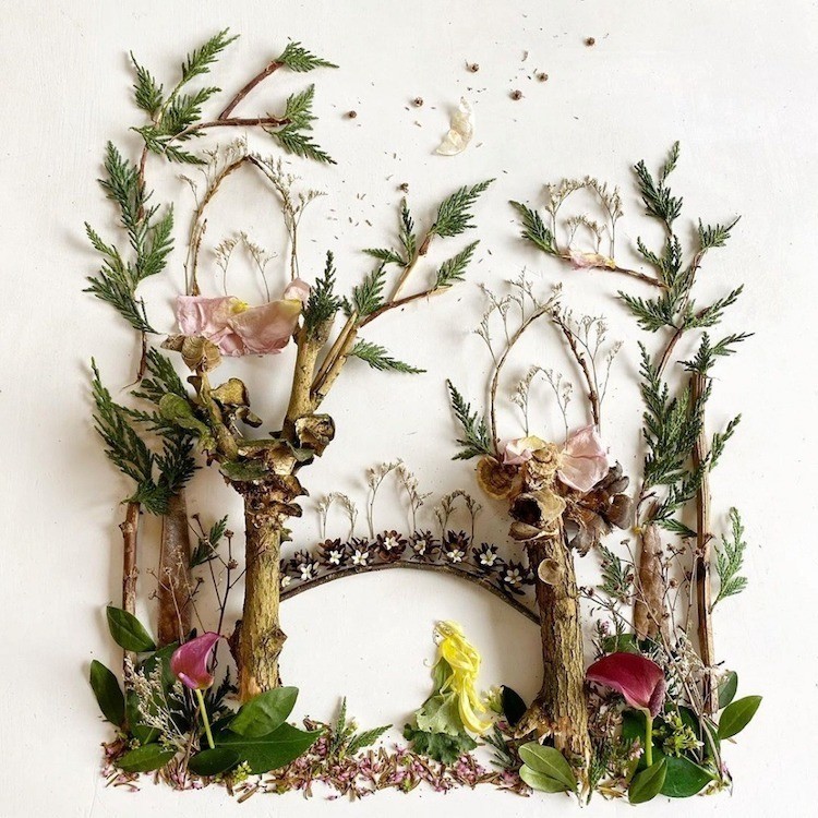 Любительница природы, писательница и ботаник Бриджит Бет Коллинз, также известная как Флора Фораджер, создает удивительные произведения искусства, используя растения так же, как художники используют пигмент. Она преображает цветы и листья в причудливые иллюстрации, которые выглядят так, будто сошли со страниц сказочной книги.