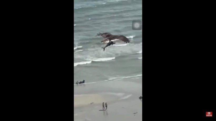 Однажды отдыхающие на пляже в Южной Каролине наблюдали необычную охоту скопы на акулу. Свой улов птица подняла в воздух и победоносно пронесла прямо над отдыхающими. Добыча пыталась сопротивляться, но вырваться из цепких лап не получалось — скопа уносила ее все дальше. Все происходящее потрясенные любители пляжного отдыха сняли на видео.