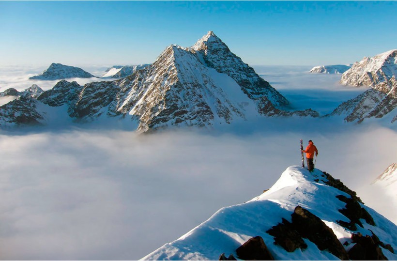 Частые песчаные бури оставляют красноватый налет на белоснежном покрове гор. Местные пейзажи выглядят неповторимо из-за искрящегося снега и бурого песка.