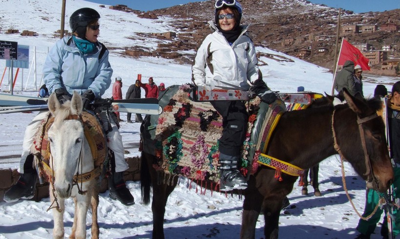 Люди приходят к склонам с лыжами и в полном обмундировании почти ежедневно. Специальная одежда и снаряжение попадает на марокканский курорт из европейских стран и Северной Америки.