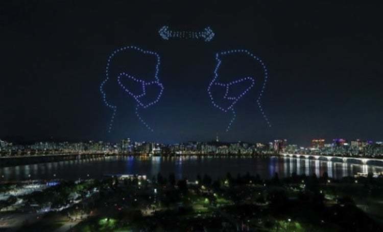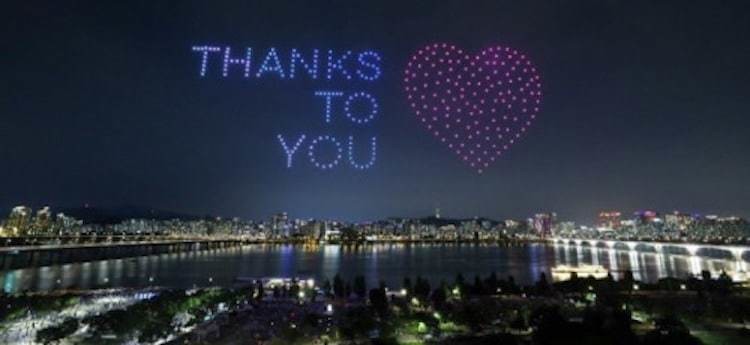 Чтобы побудить корейцев продолжать борьбу с распространением коронавируса и выразить благодарность сотрудникам здравоохранения, дроны выстраивались в воздухе в различные изображения — демонстрация мытья рук, людей в масках, социальной дистанции и т. д. Финальный дизайн был посвящен медикам и представлял собой сердце с надписью «Спасибо тебе».
