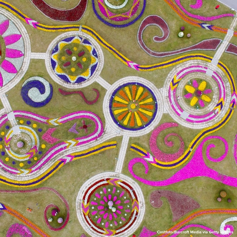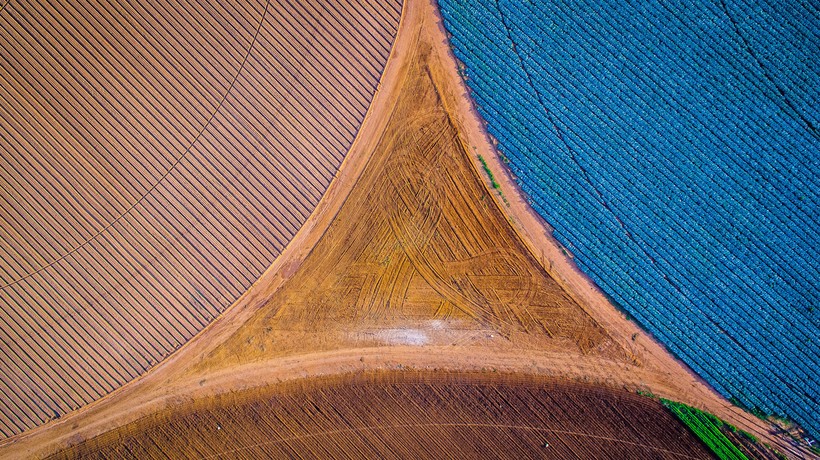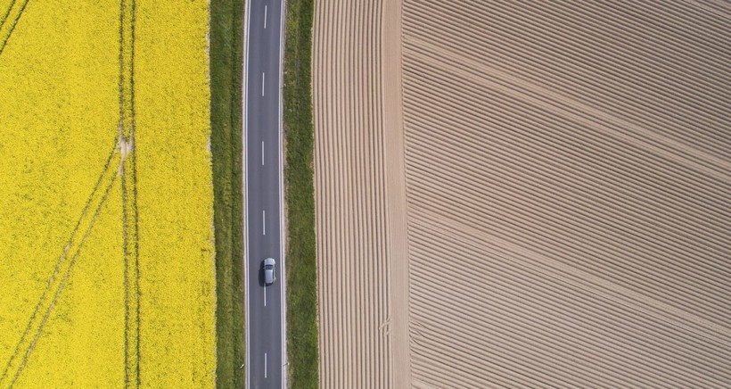 Сверху даже привычные нам виды оказываются такими завораживающими: очаровательные разноцветные поля в Германии.