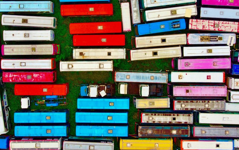 Кладбище отработавших свой срок автобусов на территории государства Тайвань с высоты выглядит довольно позитивно.