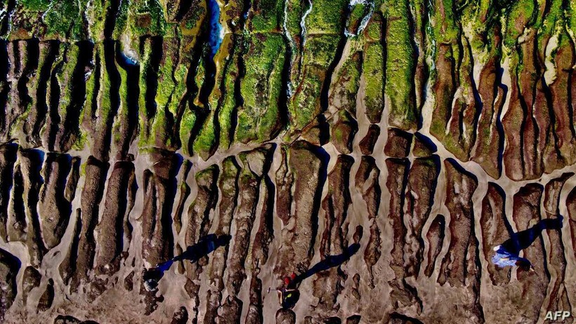Природа – самый лучший художник. На побережье Тайваня зеленый риф покрылся водорослями.