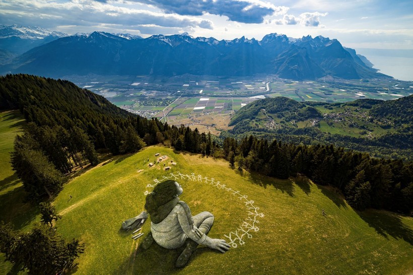 Пандемия вдохновила художника Гийома Легро на создание гигантской картины «Вне кризиса», которую он расположил на 3 000 квадратных метрах в Альпах.
