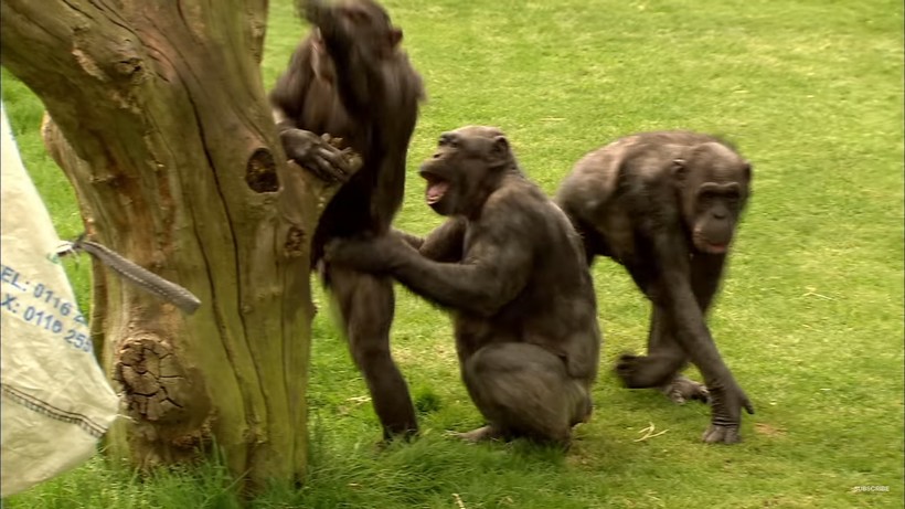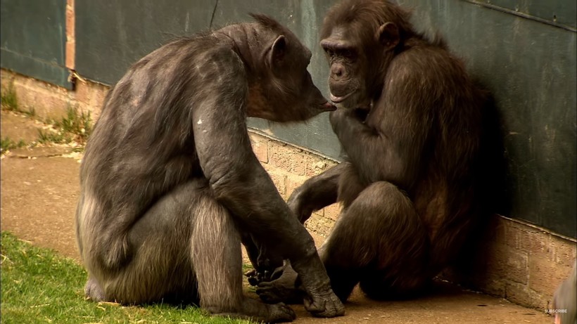 «Когда примат надувает губы, это означает, что он просит еды. Когда шимпанзе чешет голову или спину другого, он как бы говорит, что он друг и соратник. Когда обезьяны притворяются, что кусают, это значит, что им нравится играть вместе. Все эти модели поведения укрепляют социальные связи, передают чувства и показывают лидеров, которые отвечают за группу. Они также выполняют действия, которые кажутся слушком человечными, но пока шимпанзе по всему миру имеют только ограниченный запас звуков. Поэтому они постоянно изобретают и делятся друг с другом новыми жестами. Они имитируют жесты друг друга, как говорит доктор Либаль. Так они учатся и общаются. Эта теория заставила некоторых приматологов поверить, что такое поведение могло быть у древних людей и, возможно, привело к формированию языков, которые мы все используем сегодня», — заканчивает рассказ диктор.