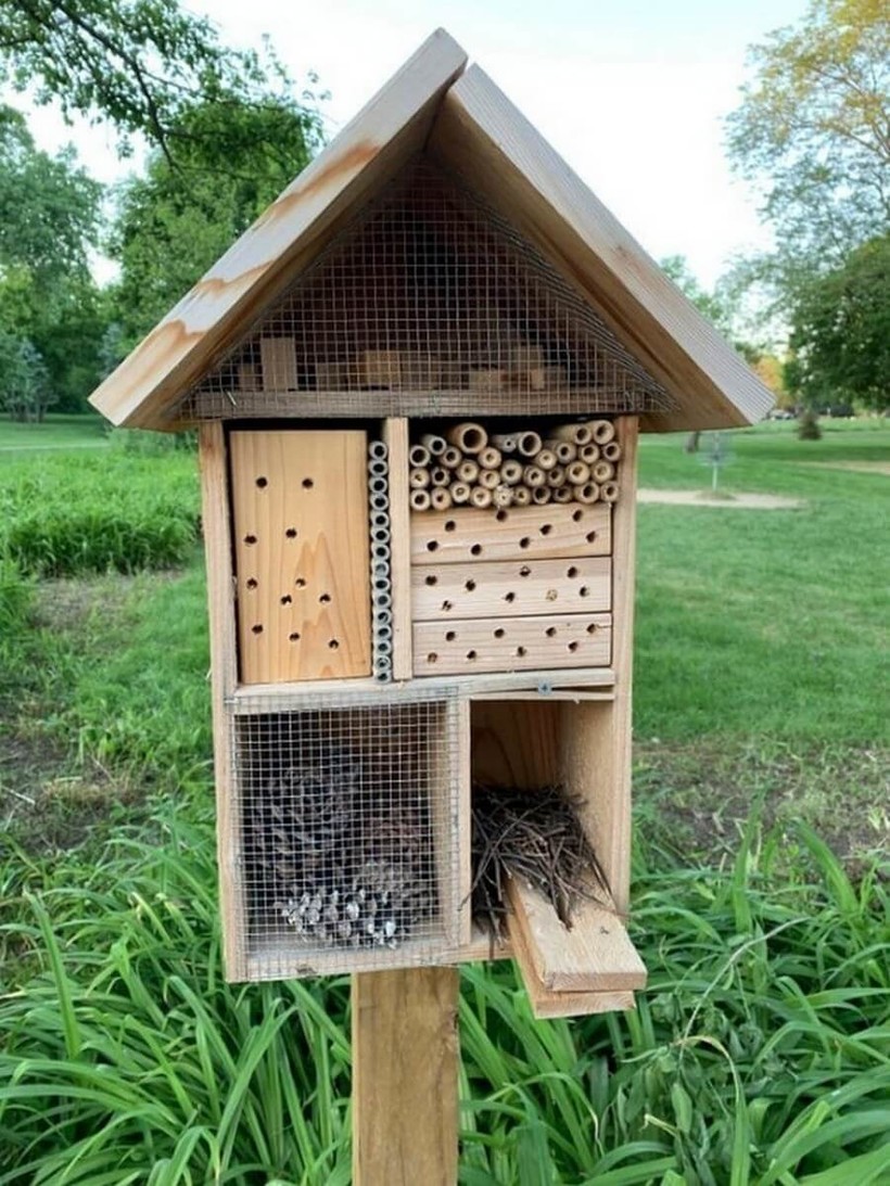 Гуляющих в сквере прохожих, заинтересовала странная деревянная постройка, состоящая из множества съемных деталей. Пользователи сети объяснили, что это дом для насекомых. Его специально заполняют разными предметами для комфортной зимовки маленьких жильцов.
