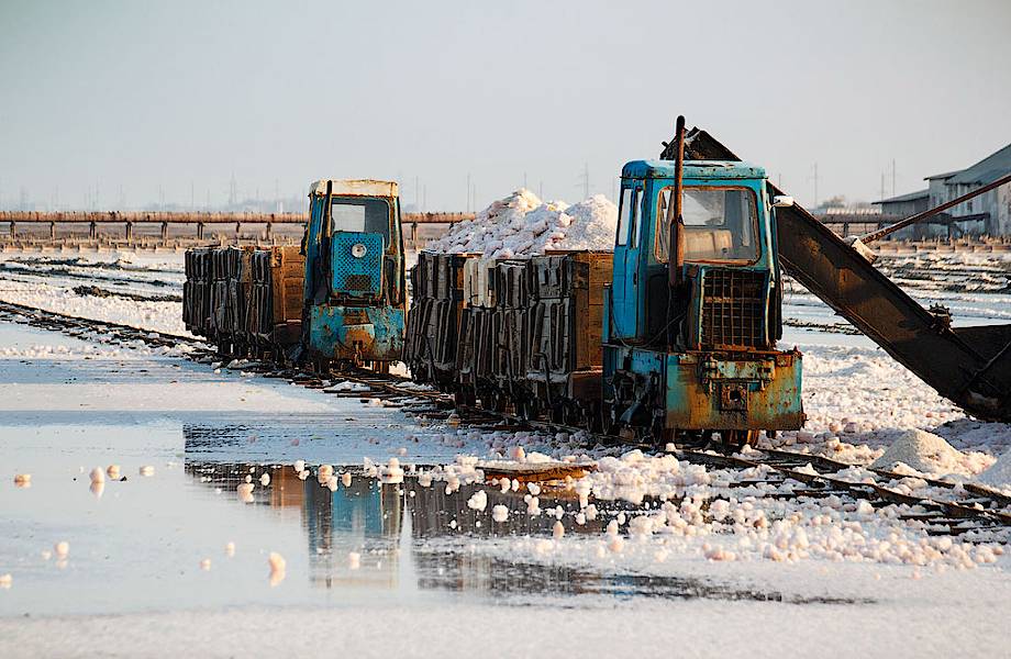 После того как соль «созрела», а происходит это, как правило, в конце августа, на работу выходит солеуборочный комбайн. Возраст этой диковинной техники составляет без малого 50 лет, а вес — порядка 25 тонн. Аналогов, как заявляют местные солевары, у этой машины нет, поэтому за ней пристально следят и берегут как зеницу ока: